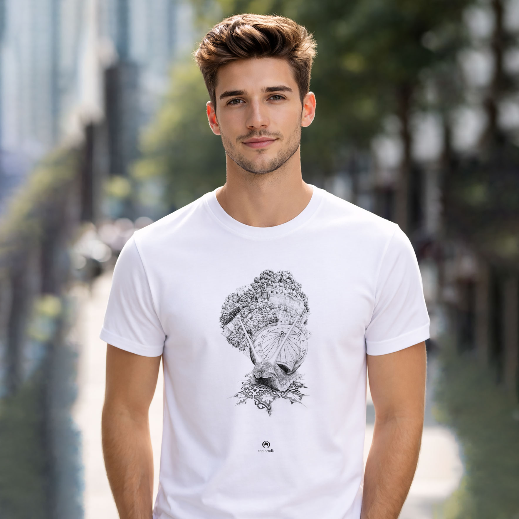 Samarreta blanca unisex amb il·lustració impresa amb sublimació.