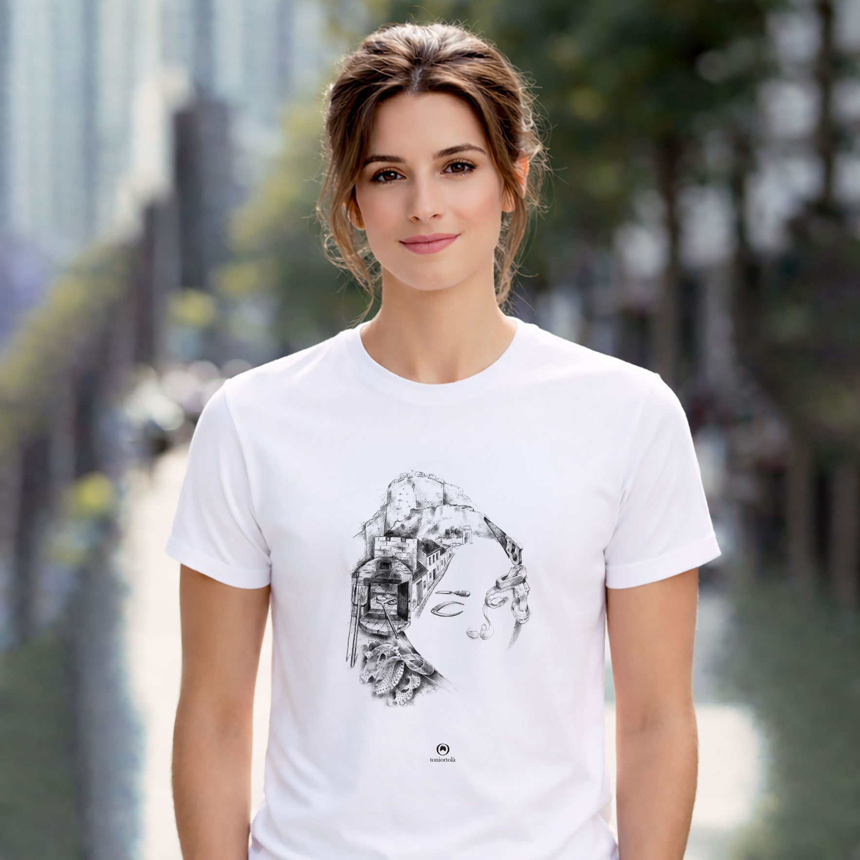 Samarreta blanca unisex amb il·lustració impresa amb sublimació.