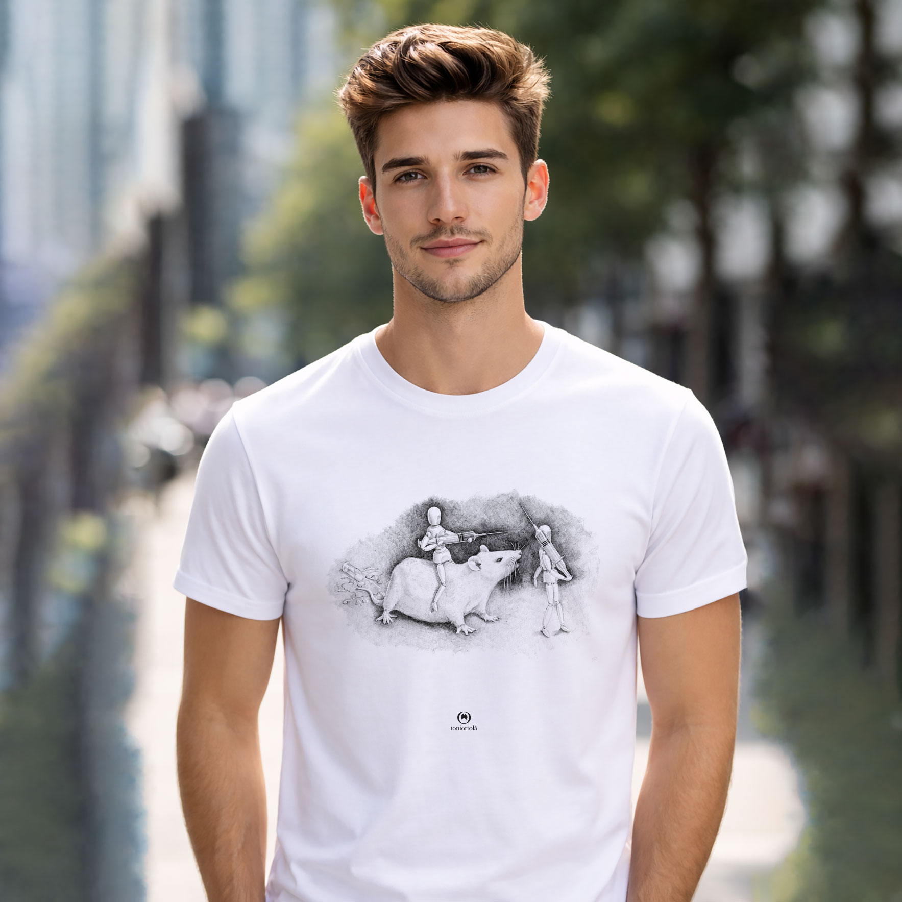 Samarreta blanca unisex amb il·lustració impresa amb sublimació.
